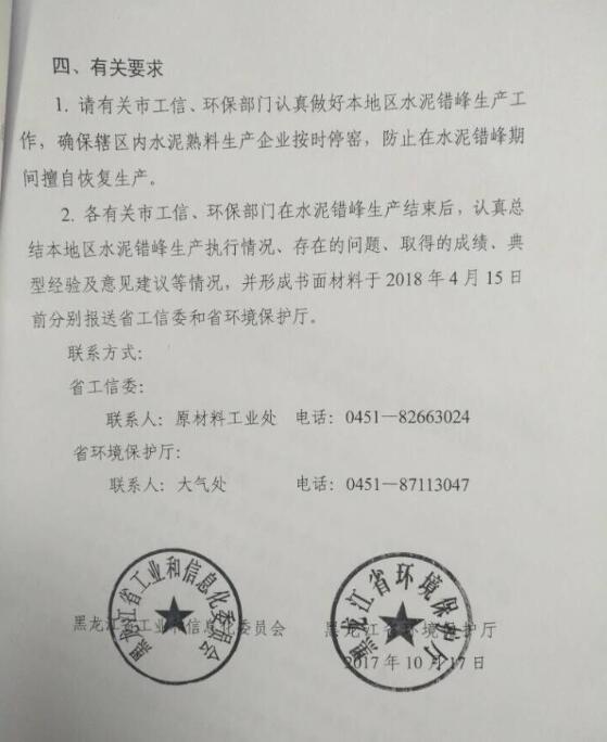 附件:《黑龍江省工業(yè)和信息化委員會(huì)黑龍江省環(huán)境保護(hù)廳關(guān)于黑龍江省2017-2018年度水泥錯(cuò)峰生產(chǎn)工作的通知》