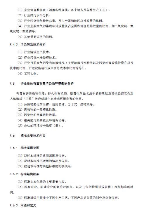 標(biāo)準(zhǔn)編制說明的主要內(nèi)容包括項(xiàng)目背景、行業(yè)概況、標(biāo)準(zhǔn)制(修)訂的必要性分析、行業(yè)產(chǎn)排污情況及污染控制技術(shù)分析、行業(yè)排放有毒有害污染物環(huán)境影響分析、標(biāo)準(zhǔn)主要技術(shù)內(nèi)容、國(guó)內(nèi)外相關(guān)排放標(biāo)準(zhǔn)研究、標(biāo)準(zhǔn)實(shí)施的環(huán)境效益及經(jīng)濟(jì)技術(shù)分析、標(biāo)準(zhǔn)征求意見、技術(shù)審查和行政審查情況。