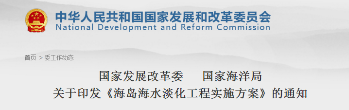 國(guó)家發(fā)展改革委 國(guó)家海洋局關(guān)于印發(fā)《海島海水淡化工程實(shí)施方案》的通知