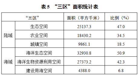 對海洋限制開發(fā)區(qū)域,相應(yīng)陸域禁止開展對海洋生態(tài)有較大影響的開發(fā)活動。海洋限制開發(fā)區(qū)域包括海洋漁業(yè)保障區(qū)和重點(diǎn)海洋生態(tài)功能區(qū)。限制陸域開發(fā)利用活動,持續(xù)推進(jìn)陸域污染防治,實(shí)施污染物達(dá)標(biāo)入海,保護(hù)海洋生態(tài)環(huán)境。為保持海陸主體功能銜接一致,調(diào)整相接陸域生態(tài)和生活空間,涉及面積5941平方千米。