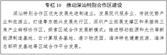 產(chǎn)業(yè)發(fā)展。依托深汕特別合作區(qū),推進(jìn)汕尾主動對接融入深莞惠經(jīng)濟(jì)圈,全面承接深莞惠經(jīng)濟(jì)圈輻射帶動,打造珠江東岸產(chǎn)業(yè)轉(zhuǎn)移主承接區(qū)。優(yōu)先發(fā)展先進(jìn)制造業(yè)和電子信息產(chǎn)業(yè),提升發(fā)展傳統(tǒng)優(yōu)勢產(chǎn)業(yè)和旅游業(yè),優(yōu)化發(fā)展現(xiàn)代農(nóng)業(yè),重點(diǎn)發(fā)展能源工業(yè)和以馬宮海洋漁業(yè)科技產(chǎn)業(yè)園為載體的大型深加工漁業(yè),推動汕尾臨海能源工業(yè)基地建設(shè);在甲子、后湖海域布局海上風(fēng)電。