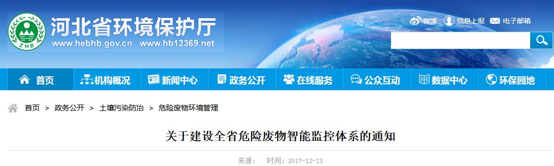 日前,河北環(huán)保廳印發(fā)關(guān)于建設(shè)全省危險(xiǎn)廢物智能監(jiān)控體系的通知。通知要求,河北危廢企業(yè)安裝智能監(jiān)控體系。涉及危險(xiǎn)廢物(不含醫(yī)療廢物)重點(diǎn)產(chǎn)廢單位(年產(chǎn)100噸以上危險(xiǎn)廢物)、自行利用處置危險(xiǎn)廢物單位;全省所有危險(xiǎn)廢物(不含醫(yī)療廢物)經(jīng)營(yíng)單位(含收集單位),及符合豁免管理規(guī)定的危險(xiǎn)廢物處置、利用單位(以下簡(jiǎn)稱豁免管理經(jīng)營(yíng)單位)2018年1月31日前,全省所有正常經(jīng)營(yíng)的危險(xiǎn)廢物經(jīng)營(yíng)單位,完成安裝和聯(lián)網(wǎng)工作。2018年6月30日前,全省所有危險(xiǎn)廢物(不含醫(yī)療廢物)重點(diǎn)產(chǎn)廢單位(年產(chǎn)100噸以上危險(xiǎn)廢物)、自行利用處置單位、收集單位和豁免管理經(jīng)營(yíng)單位,完成安裝和聯(lián)網(wǎng)工作。全文如下:
