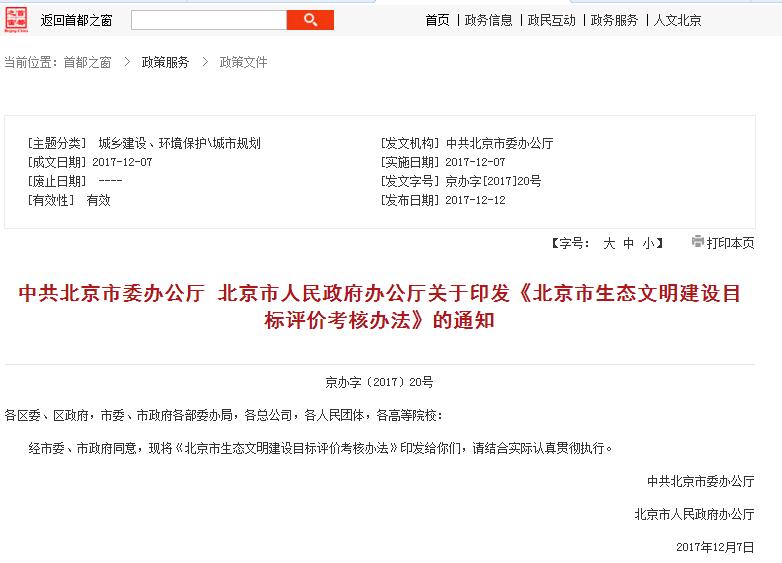北京市生態(tài)文明建設(shè)目標評價考核辦法