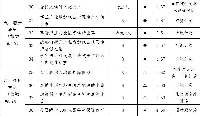 1.標●的為《北京城市總體規(guī)劃(2016年—2035年)》中確定的指標,標▲的為《北京市國民經(jīng)濟和社會發(fā)展第十三個五年規(guī)劃綱要》中確定的資源環(huán)境約束性目標,標■的為本市相關(guān)專項規(guī)劃、工作方案等確定的重要評價指標。