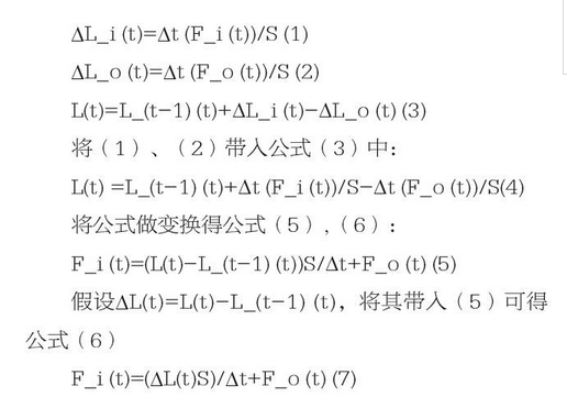 我們假設(shè)t時刻來水流量為Fi(t),集水池的液位就為L(t),S為集水池的底面積,膜進水量Fo(t),ΔL_i(t)為來水液位增量,L_(t-1)(t)為t-1時的液位,ΔL_o(t)為超濾系統(tǒng)處理產(chǎn)量對業(yè)務(wù)液位增量??傻弥?/p>
