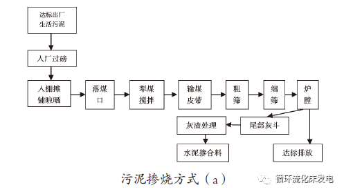 方式(a):生活污泥經污水處理廠脫水后運送至公司現(xiàn)場進行攤鋪晾曬,然后經輸煤系統(tǒng)與原煤混合入爐充分燃燒,從而達到資源化處理的效果,有效利用垃圾、污泥中的剩余熱值,減少原生垃圾及污泥因填埋對環(huán)境造成的持續(xù)污染問題。其污泥摻燒方式如圖1(a)所示。