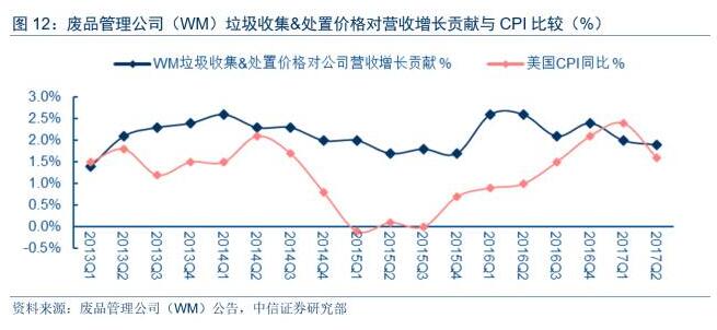 類似廢品管理(WM)這類的大型市政廢物管理公司在提升前端的收集&轉(zhuǎn)運收費標準的同時,也同時相應提高填埋業(yè)務對外收費標準,進而影響前端中小型環(huán)衛(wèi)公司的成本結(jié)構,推動中小型環(huán)衛(wèi)公司跟進提升收集&轉(zhuǎn)運價格。因此,在和上游客戶的博弈過程中,高度集中和前后端打通的市場結(jié)構使得競爭對手不能通過不提價戰(zhàn)略而搶占龍頭企業(yè)的環(huán)衛(wèi)市場份額,并最終形成全行業(yè)廢物收集及處置價格的持續(xù)性上漲。由此可見,在市場高度集中及龍頭打通產(chǎn)業(yè)鏈的市場結(jié)構下,小幅高于CPI的溫和性價格上漲模式具有非常高的持續(xù)性,最終推動行業(yè)規(guī)模持續(xù)穩(wěn)健上升。