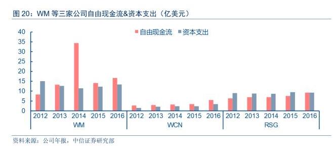 第三:通過對美國三大環(huán)衛(wèi)龍頭公司進行研究,我們發(fā)現(xiàn)環(huán)保公司在步入行業(yè)發(fā)展成熟期之后,對外部融資擴張的依賴程度下降,自由現(xiàn)金流創(chuàng)造能力極佳,環(huán)保公司轉(zhuǎn)變成穩(wěn)定分紅的公用事業(yè)類公司。