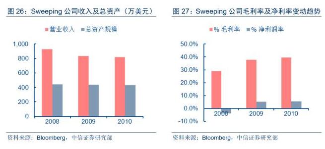 專注于清掃業(yè)務的SweepingCorporationofAmerica服務范圍包括美國八個州,業(yè)務涵蓋市郡街道清掃、國道和州際清掃、道路施工清掃、工業(yè)&制造設施清掃、商業(yè)和住宅清掃等領域,每個月清掃里程約25,000英里,客戶名單包括國家交通運輸部門、市郡公共工程部門、大型工業(yè)設施公司和建筑公司等。截至2010年,公司總資產(chǎn)僅為430萬美元,2008~2010年的收入分別為930、830、820萬美元,毛利分別為270、310、320萬美元,與2016年收入高達136億美元的固廢處理龍頭公司W(wǎng)asteManagement相比,體量明顯不在一個數(shù)量級,美國垃圾清掃市場規(guī)模明顯較小。