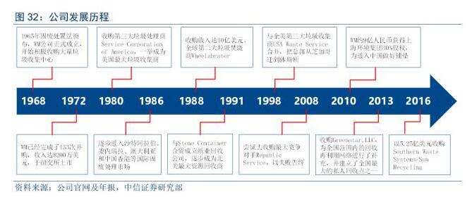 上市之后,公司持續(xù)開啟一系列收購,僅在在上市后一年半內(nèi)就完成75起并購。1998年,公司與全美第三大垃圾收集企業(yè)USAWasteService合并,2008年公司出價62億美金欲收購全美第二大固廢處理企業(yè)RepublicService,但最終沒有獲得成功。在立足美國的基礎上,WM也在1975~1989年逐步進入沙特阿拉伯、阿根廷、澳大利亞、委內(nèi)瑞拉和中國香港等地區(qū),從事市政垃圾處理。1984年公司收購ServicesCorporationofAmercia,收入規(guī)模從10億美元增加到12億美元,一舉成為美國最大固廢處理公司。