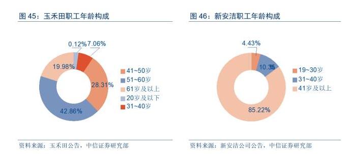 目前國內(nèi)環(huán)衛(wèi)行業(yè)的勞動力密度程度高且勞動力老齡化問題突出。環(huán)衛(wèi)服務業(yè)很多從業(yè)人員已經(jīng)超過退休年齡。從玉禾田和新安潔兩家環(huán)衛(wèi)公司職工年齡統(tǒng)計可以看到,40歲以上員工占大部分,其中51歲以上比例也不小。如果只對環(huán)衛(wèi)一線員工進行統(tǒng)計,老齡員工占比會進一步提升。向前看,老齡化未來會隨著人口紅利的喪失會變得更加突出。