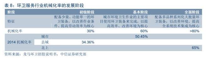 由此可見,隨著地方政府對環(huán)衛(wèi)的需求從政府購買服務升級至PPP模式,且國內(nèi)環(huán)衛(wèi)上下游產(chǎn)業(yè)鏈正在逐步打通,伴隨著行業(yè)機械化率快速提升,國內(nèi)環(huán)衛(wèi)公司的商業(yè)模式將逐步變重。而且從海外經(jīng)驗看,環(huán)衛(wèi)公司以重資產(chǎn)模式運營是行業(yè)發(fā)展大勢所趨,國內(nèi)環(huán)衛(wèi)公司需要對模式升級盡早作出相應準備,以適應未來行業(yè)變化趨勢。