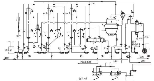圖 3 四效逆流降膜式設(shè)備連接