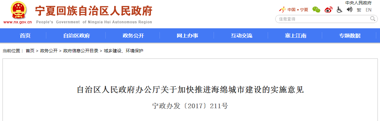 近日,在寧夏回族自治區(qū)人民政府獲悉關(guān)于加快推進(jìn)海綿城市建設(shè)的實(shí)施意見,全文如下: