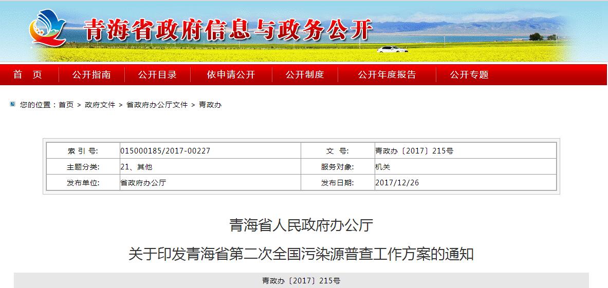關(guān)于印發(fā)青海省第二次全國(guó)污染源普查工作方案的通知