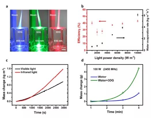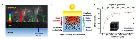 (c) 實驗蒸汽發(fā)生效率與3DG的不同厚度(模擬石墨烯層)圖像。
