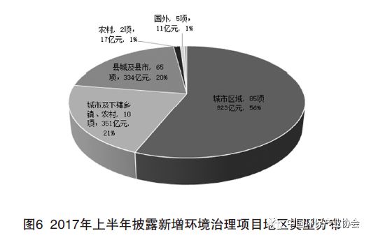 “十二五”以來重點(diǎn)地區(qū)環(huán)境污染治理項(xiàng)目快速推進(jìn),特別是重點(diǎn)中心城市環(huán)保市場(chǎng)日趨飽和,環(huán)境治理項(xiàng)目正逐漸轉(zhuǎn)向中小城鎮(zhèn)及部分農(nóng)村地區(qū)拓展。2017年上半年城市環(huán)境治理項(xiàng)目仍占主體地位,投資總額923億元,占披露總額的56%。此外,約有351億元的項(xiàng)目為城區(qū)與下轄鄉(xiāng)鎮(zhèn)、農(nóng)村的打包環(huán)境治理項(xiàng)目??h城及縣級(jí)市環(huán)境治理、農(nóng)村環(huán)境治理項(xiàng)目數(shù)量已經(jīng)相當(dāng)可觀,投資總額達(dá)到披露總額的21%,但以單體項(xiàng)目為主,平均投資規(guī)模偏小。