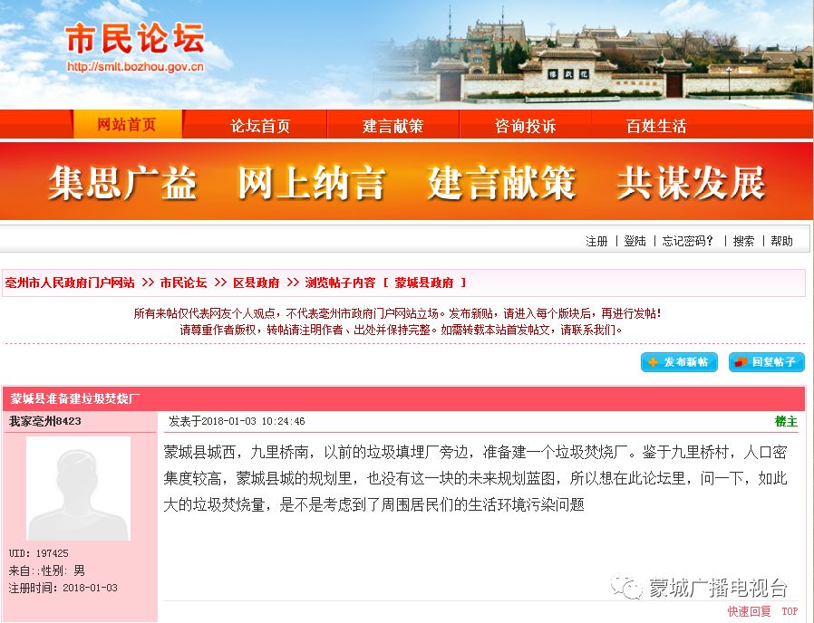 鑒于九里橋村,人口密集度較高,蒙城縣城的規(guī)劃里,也沒有這一塊的未來規(guī)劃藍(lán)圖,所以想在此論壇里,問一下,如此大的垃圾焚燒量,是不是考慮到了周圍居民們的生活環(huán)境污染問題