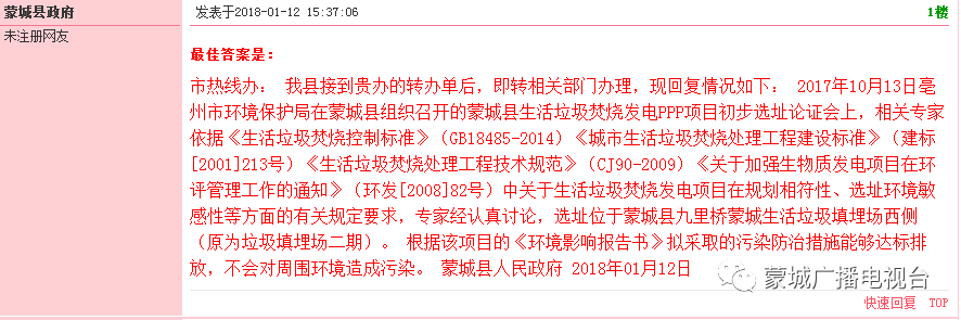 市熱線辦: 我縣接到貴辦的轉(zhuǎn)辦單后,即轉(zhuǎn)相關(guān)部門辦理,現(xiàn)回復(fù)情況如下: 2017年10月13日亳州市環(huán)境保護局在蒙城縣組織召開的蒙城縣生活垃圾焚燒發(fā)電PPP項目初步選址論證會上,相關(guān)專家依據(jù)《生活垃圾焚燒控制標(biāo)準(zhǔn)》(GB18485-2014)《城市生活垃圾焚燒處理工程建設(shè)標(biāo)準(zhǔn)》(建標(biāo)[2001]213號)《生活垃圾焚燒處理工程技術(shù)規(guī)范》(CJ90-2009)《關(guān)于加強生物質(zhì)發(fā)電項目在環(huán)評管理工作的通知》(環(huán)發(fā)[2008]82號)中關(guān)于生活垃圾焚燒發(fā)電項目在規(guī)劃相符性、選址環(huán)境敏感性等方面的有關(guān)規(guī)定要求,專家經(jīng)認(rèn)真討論,選址位于蒙城縣九里橋蒙城生活垃圾填埋場西側(cè)(原為垃圾填埋場二期)。