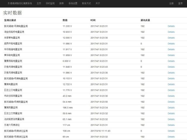 信息發(fā)布層信息發(fā)布采用網(wǎng)站發(fā)布和短信發(fā)布相結合的方式,其中信息發(fā)布網(wǎng)站可通過電腦或者手機使用Internet瀏覽。深層隧道排水區(qū)域液位在線監(jiān)測系統(tǒng)是如圖3所示東濠涌深隧優(yōu)化調(diào)度系統(tǒng)的重要組成部分,發(fā)布網(wǎng)站由主頁、實時監(jiān)視、報表、系統(tǒng)設置、聯(lián)系方式等幾部分組成,可通過發(fā)布網(wǎng)站查詢液位監(jiān)測點的具體位置,在線查詢即時數(shù)據(jù),以及使用報表查詢各個監(jiān)測點的歷史數(shù)據(jù),并可通過系統(tǒng)設置功能在線查詢設備工況,以及喚醒已休眠的設備。短信發(fā)布功能則利用短信平臺執(zhí)行,在達到警戒水位的時候,采用群發(fā)短信的形式將預警短信發(fā)送給預先在系統(tǒng)中設定好的調(diào)度管理人員,使得調(diào)度人員能夠及時采取調(diào)度措施。
