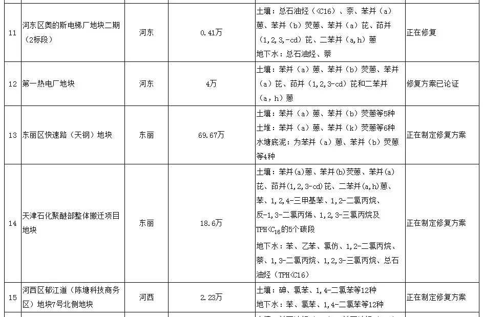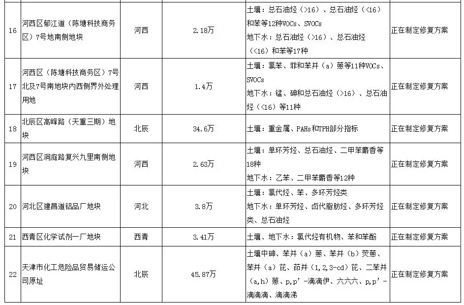 2017年4月7日天津市環(huán)境保護局 公布了《天津市污染地塊名錄》, 共有22塊污染地塊。