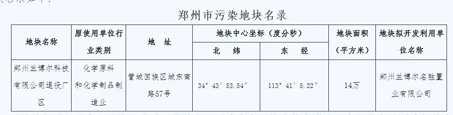 鄭州公布1塊污染地塊