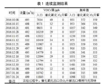對(duì)于處理前原始廢氣和處理后凈化氣均采用PGM7340VOCs檢測(cè)儀和XP-329ⅢR型臭味檢測(cè)儀進(jìn)行檢測(cè)。
