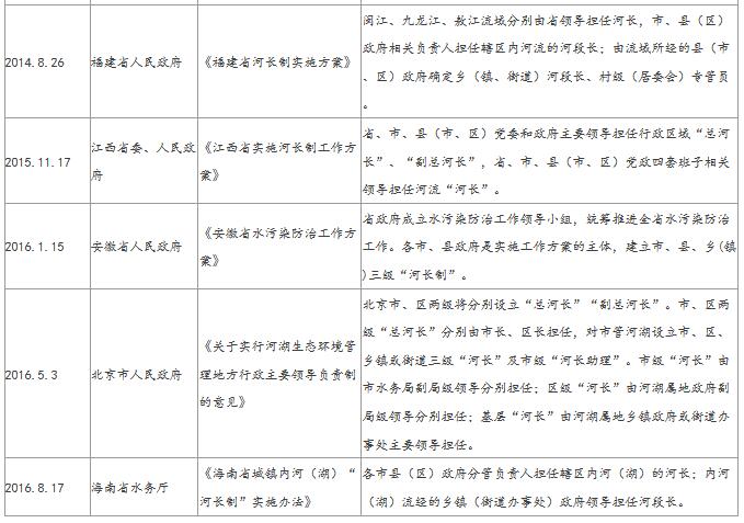 2016年12月14日,水利部、環(huán)保部,發(fā)布《關(guān)于全面推行河長制的意見》實施方案,具體工作包括:確定河湖分級名錄、明確河長制辦公室、細化主要任務(wù)、強化分類指導(dǎo)、明確工作進度。