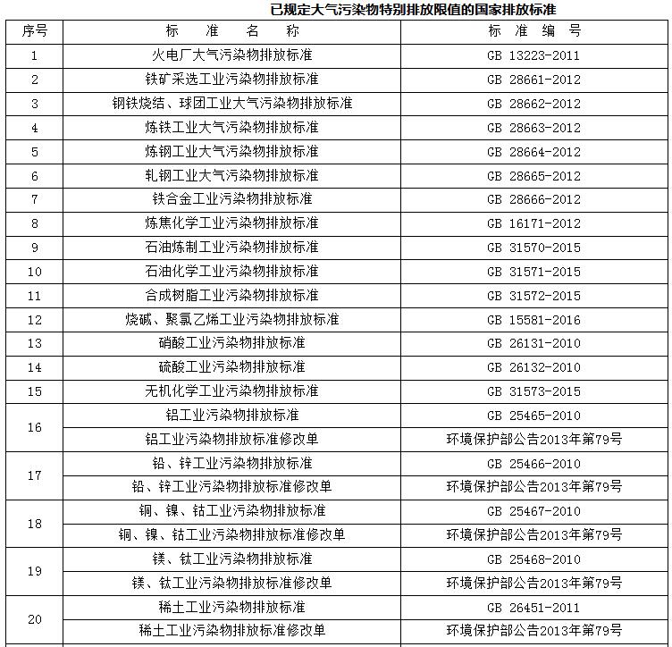附件:已規(guī)定大氣污染物特別排放限值的國(guó)家排放標(biāo)準(zhǔn)