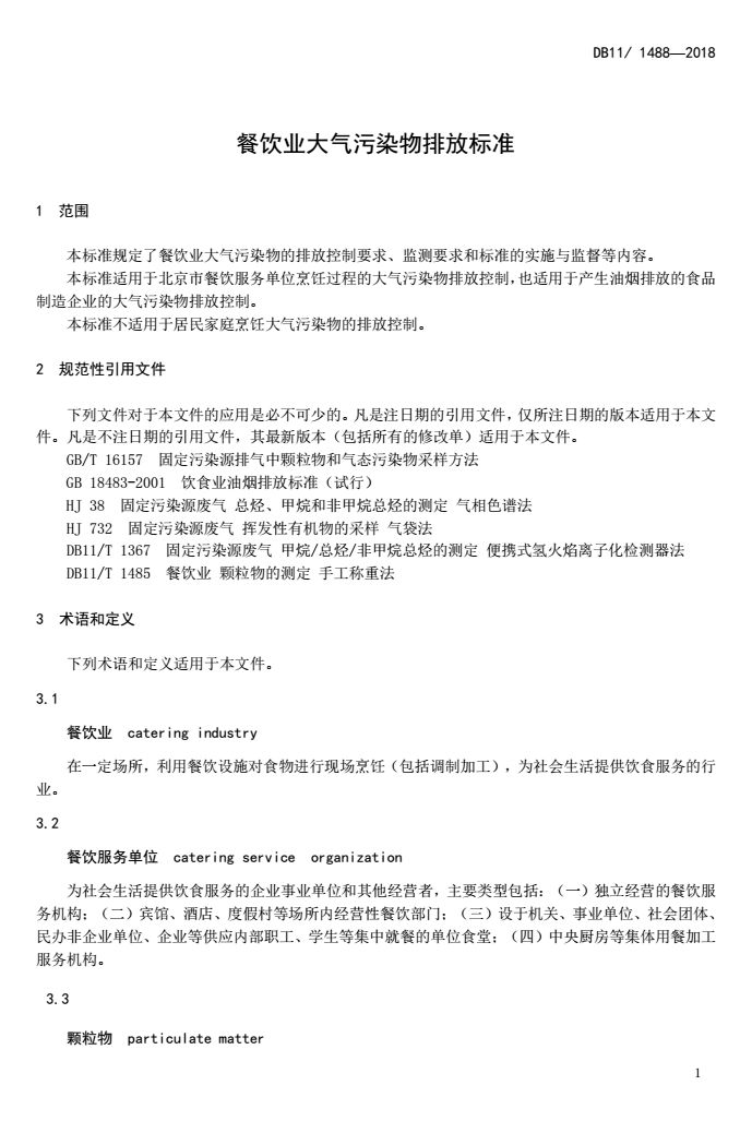 日前,北京市制定并發(fā)布《餐飲業(yè)大氣污染物排放標準》(DB11/1488-2018)(以下簡稱“標準”)。
