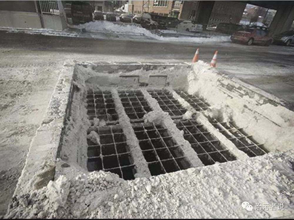 先從城市角度來看看冬季降雪對污水廠影響。在每年的冬季期間,降溫和下雪是我國北方冬季常有的自然現(xiàn)象,這些年隨著全球氣溫的變化,在南方地區(qū)也開始頻繁降雪,降雪在城市中會造成道路濕滑,如果不及時清理會凍結(jié)成冰,造成各種交通事故。因此對于城市來說,每次降雪都是需要及時進(jìn)行清理的。現(xiàn)在大多數(shù)城市的市政部門都配置有掃雪車,城市環(huán)衛(wèi)部門在降雪后都會及時進(jìn)行清理,還有就是會撒融雪劑來加快道路積雪的融化。由于雪是寒冷條件下的固體形態(tài)的水,這些道路積雪一部分會堆在道路上的綠化帶內(nèi),一部分會直接掃入到城市雨水及污水管道內(nèi),同時在道路上撒的融雪劑融化的道路積雪會流入到道路上的雨水管網(wǎng)內(nèi)。在合流制的排水管網(wǎng)的城市中,這些雪水進(jìn)入到城市排水系統(tǒng)內(nèi),隨著城市污水進(jìn)入到污水廠內(nèi)。