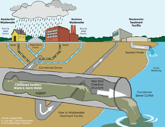 在暴雨過程中,因短時(shí)間內(nèi)產(chǎn)生大量雨污水,城市排水系統(tǒng)以及污水處理廠很容易產(chǎn)生容量超載,導(dǎo)致未經(jīng)處理的污水外流,造成城市內(nèi)澇或雨污水溢流,污染環(huán)境 (圖1)。