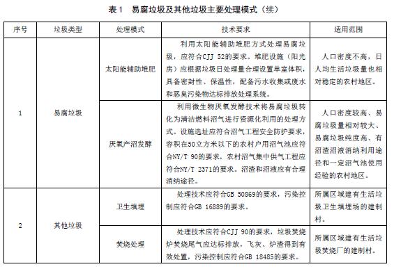易腐垃圾及其他垃圾的主要處理模式見表1。