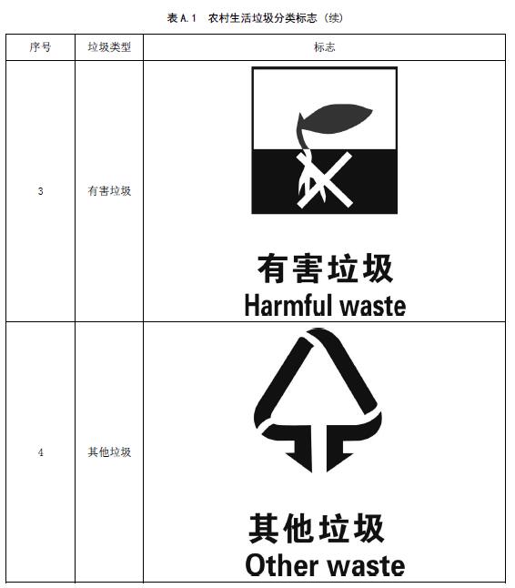 農(nóng)村生活垃圾分為易腐垃圾、可回收物、有害垃圾和其他垃圾四大類,分類標(biāo)志見附錄A。