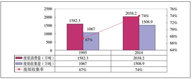圖51995~2014年德國(guó)廢紙未利用量對(duì)比