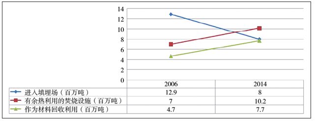 由于統(tǒng)計(jì)口徑不一致,我國(guó)廢塑料回收利用水平被嚴(yán)重低估。以歐盟為例,歐洲塑料協(xié)會(huì)不僅把廢塑料材料回收利用統(tǒng)計(jì)為回收利用,而且把進(jìn)入帶有余熱利用的垃圾焚燒設(shè)施廢塑料也算作回收利用。例如,德國(guó)2013年廢塑料產(chǎn)生量568萬(wàn)噸,統(tǒng)計(jì)廢塑料回收利用率為99%,其中57%是進(jìn)行焚燒處理并余熱利用,42%是作為材料進(jìn)行回收利用。而作為材料回收利用的42%部分,有超過(guò)一半即23%為出口處理,作為原料進(jìn)行回收利用只占1%,其余18%作為功能性材料進(jìn)行回收利用。根據(jù)歐洲塑料塑料協(xié)會(huì)的統(tǒng)計(jì),2006年歐盟27個(gè)國(guó)家廢塑料產(chǎn)生量2460萬(wàn)噸,回收利用率46%,其中,材料回收利用為19%,焚燒利用為27%;到2014年歐盟廢塑料產(chǎn)生量2590萬(wàn)噸,回收利用率提高到69%,其中,材料回收利用為30%,焚燒利用為39%。這期間,伴隨著生活垃圾填埋比例降低,焚燒比例的提高,歐洲廢塑料材料回收利用與焚燒利用都有明顯增長(zhǎng),而且廢塑料焚燒利用增長(zhǎng)略高于材料利用的增長(zhǎng)。