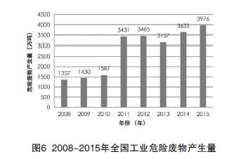 從2008年到2015年,全國工業(yè)危險廢物產(chǎn)生量逐年增多(見圖6)。