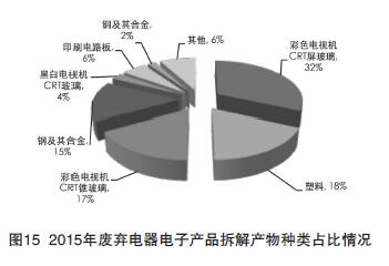 2015年廢棄電器電子產(chǎn)品拆解產(chǎn)物種類占比見圖15。