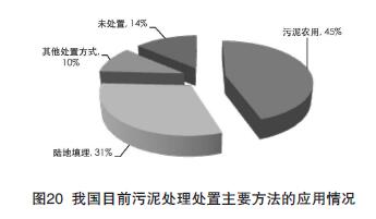 目前,我國的污泥處理處置主要方法中,污泥農(nóng)用約占44.8%、陸地填埋約占31%、其它處置約占10.5%、沒有處置的約占13.7%(見圖20)。據(jù)統(tǒng)計,國內(nèi)用于污泥處理處置的投資約占污水處理廠總投資的20%~50%,污泥處理處置仍處于相對滯后的狀態(tài)。