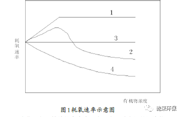 高含油有機化工廢水污染物是按照有毒和難降解特點進行分類的,大致可分為四類:第一類,具有良好的降解性能、無毒的有機物;第二類,降解性能較差、無毒的有機物;第三類,當液體濃度較低的時候,容易被微生物降解,但是當液體濃度高的時候,廢水會抑制微生物的活性,是一種無毒的有機物;第四類,當液體濃度較低的時候會對微生物產(chǎn)生抑制且有毒的有機物。廢水中不同有機物的耗氧速率示意圖如圖1所示。