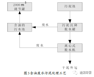 調(diào)節(jié)罐底部的油自動流入油泥浮渣的池子當中,經(jīng)過渣泵傳送到脫水罐之中進行脫水。將混凝沉淀池中剩余的污泥進行定期地清理,并用泵傳送到脫水罐中。油泥進行濃縮脫水的時候,使用離心機的進料泵間油泥傳送到脫水機中,進而形成泥餅,可直接送到鍋爐房中當作燃料使用。還可加入高分子絮凝劑,使陰陽離子型的聚丙烯酰胺(PAM)進行脫水。脫水后的廢水自動流入到含油的污水池當中,利用污水提升泵將含油的污水進行調(diào)節(jié),并處理。