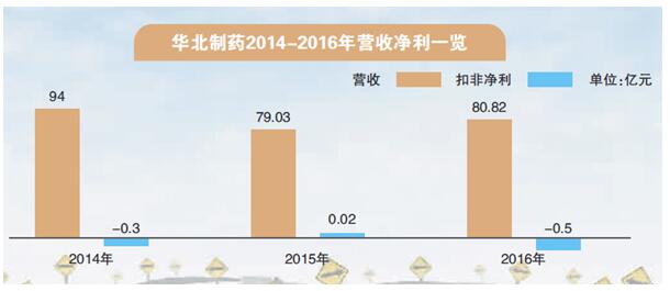華北制藥近幾年業(yè)績(jī)情況一直不太樂(lè)觀,北京商報(bào)記者翻閱公司財(cái)報(bào)發(fā)現(xiàn),2014-2015年,華北制藥營(yíng)收均呈下降趨勢(shì),較上年分別同比下降24.42%、15.87%,實(shí)現(xiàn)扣非凈利分別為-3054萬(wàn)元、240萬(wàn)元;2016年,公司營(yíng)收有2.28%的增幅,扣非凈利為-5123萬(wàn)元。