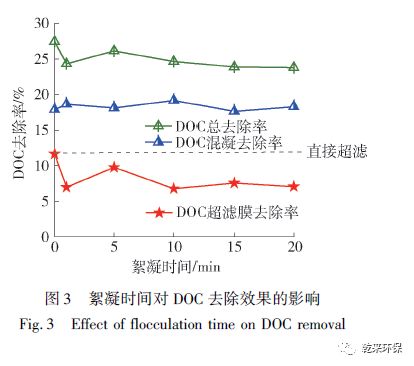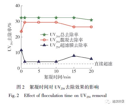1) 溶解性有機污染物DOC 和UV254 的去除作用主要取決于混凝過程的快速混合和反應(yīng)凝聚階段,后續(xù)的絮凝時間對有機物的去除沒有明顯影響.
