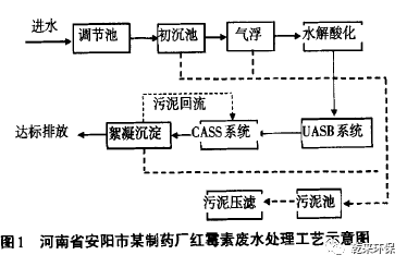 ①紅霉素生產(chǎn)廢水含有較多難生物降解物質(zhì),屬高濃度難生物降解廢水。②目前國內(nèi)主要的處理工藝路線為預(yù)處理一厭氧一好氧一(后處理)組合工藝。③根據(jù)安陽市某制藥廠紅霉素生產(chǎn)廢水水質(zhì)情況,“氣浮+水解酸化+UASB+CASS+絮凝沉淀”組合處理工藝系統(tǒng)能夠處理紅霉素生產(chǎn)廢水,使其達(dá)標(biāo)。
