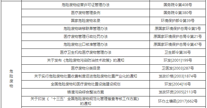 我國現(xiàn)行固體廢物污染防治主要政策法規(guī)
