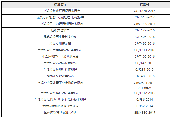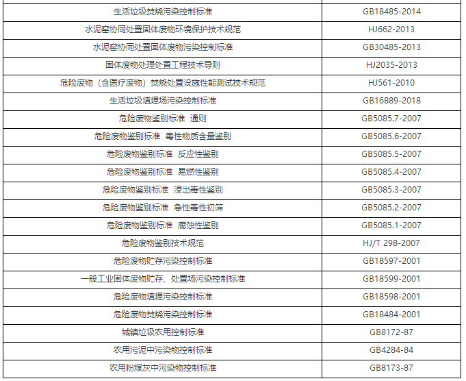 我國現(xiàn)行固體廢物污染防治主要標準規(guī)范