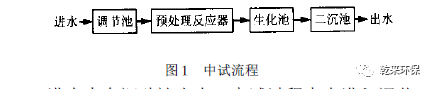 預(yù)處理后接懸浮載體生物膜法。所用懸浮填料呈球形和圓柱形,比表面積為350 m2/m3 。中試流程見(jiàn)圖1 。