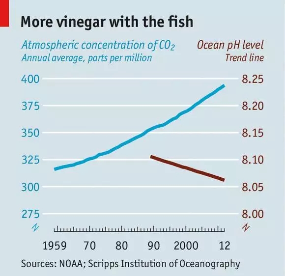 除了海洋塑料污染之外,還有不斷下降的海水pH值。海洋酸化并不是科學(xué)家之間的危言聳聽,而是實(shí)實(shí)在在的變化。