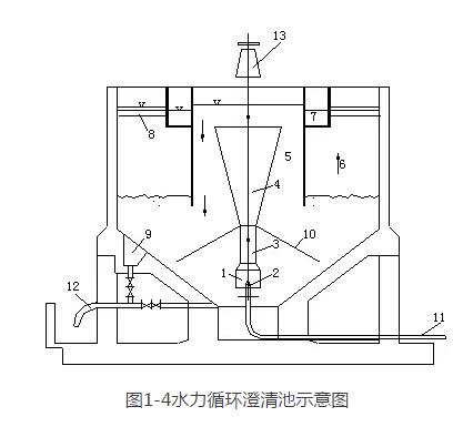 水力循環(huán)澄清池也是一種泥渣循環(huán)型澄清池,其基本原理和結(jié)構(gòu)與機械攪拌澄清池相似,只是泥渣循環(huán)的動力不是采用專用的攪拌機,而是靠進水本身的動能,所以它的池內(nèi)沒有轉(zhuǎn)動部件。