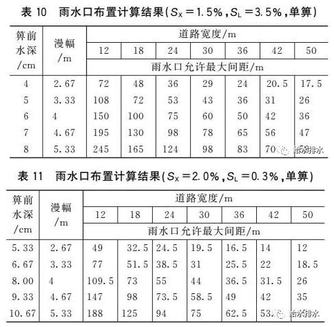 (3)當?shù)缆房v坡和漫幅不變時,雨水口允許最大間距隨道路橫坡增大而增大。